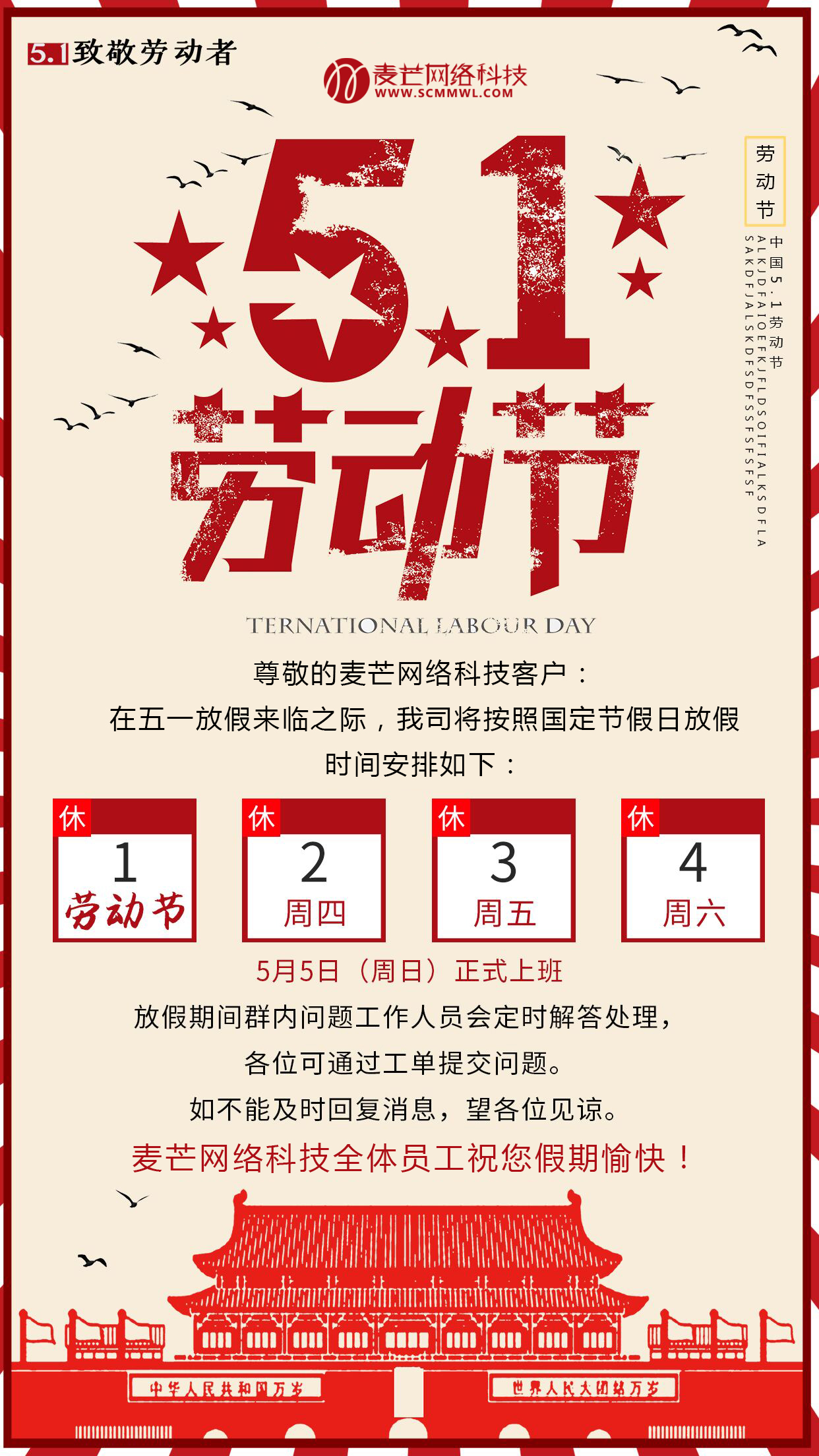 1、放假時(shí)間:2019年5月1日至2019年5月4日放假,共4天。